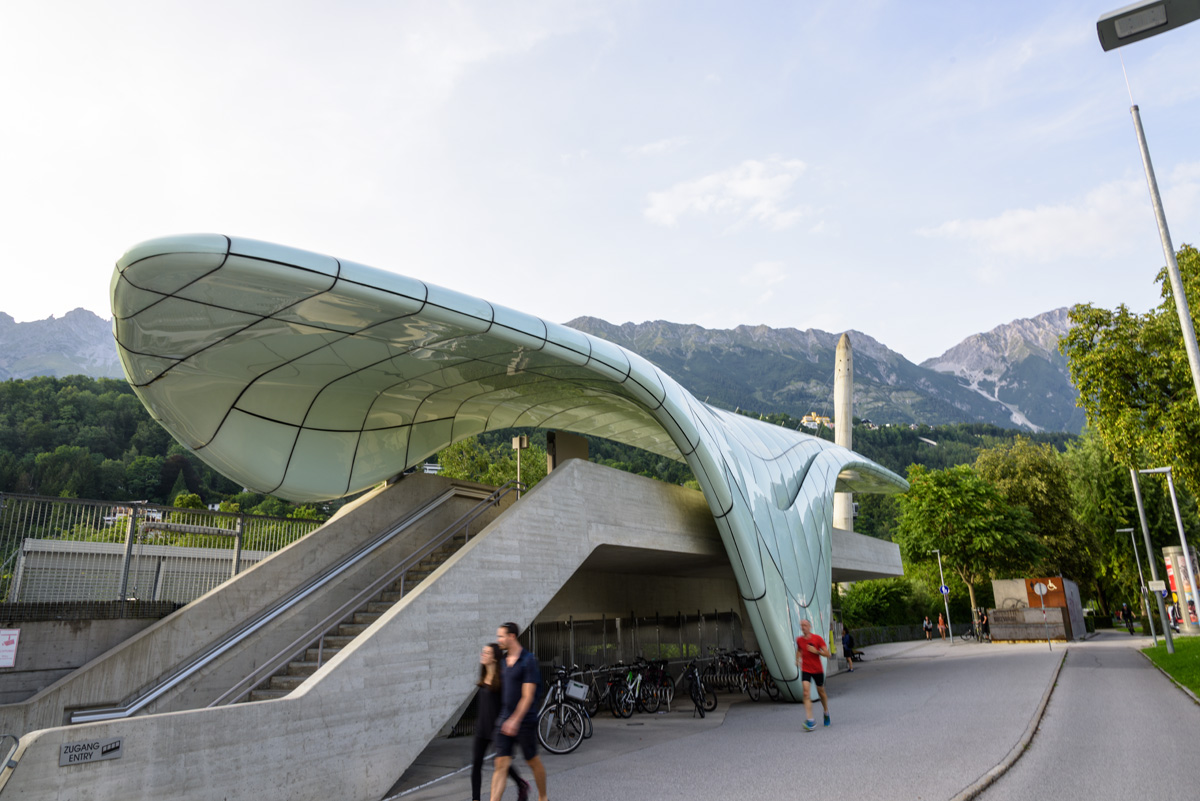 "The new Hungerburg Funicular was designed by star architect Zaha Hadid and was officially opened in 2007. The funicular set new international standards for modern architecture due to the extraordinary design of the stations. According to Zaha Hadid herself, she was inspired by the ice and snow landscapes of the region. As a result, the four stations, Congress, Löwenhaus, Alpine Zoo and Hungerburg resemble icy glaciers, giving the impression that the nearby mountain is right in the heart of the city. The contrast between the arched shape of the roofs and the firmly anchored concrete bases make the stations unique, and gives them an almost magical sense of weightlessness."