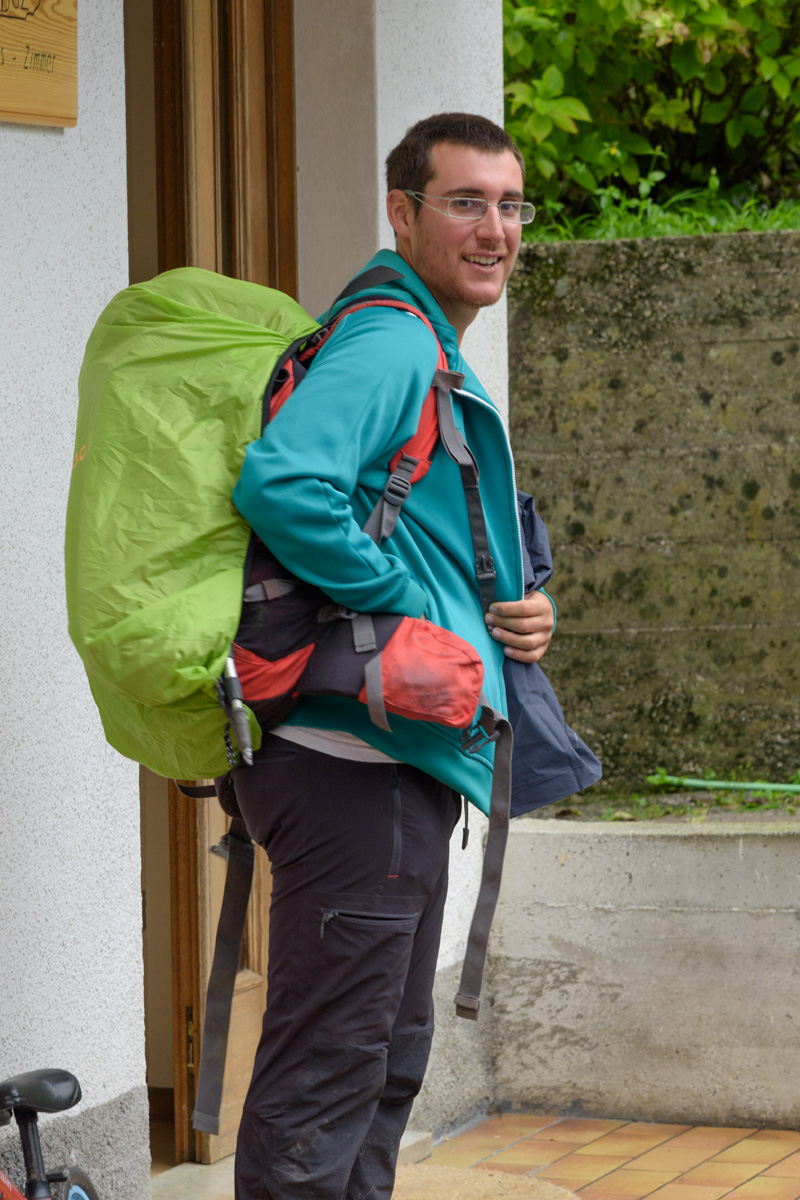 Alberto heading off to walk as far as he can before we pick him up on our way to Feltre.