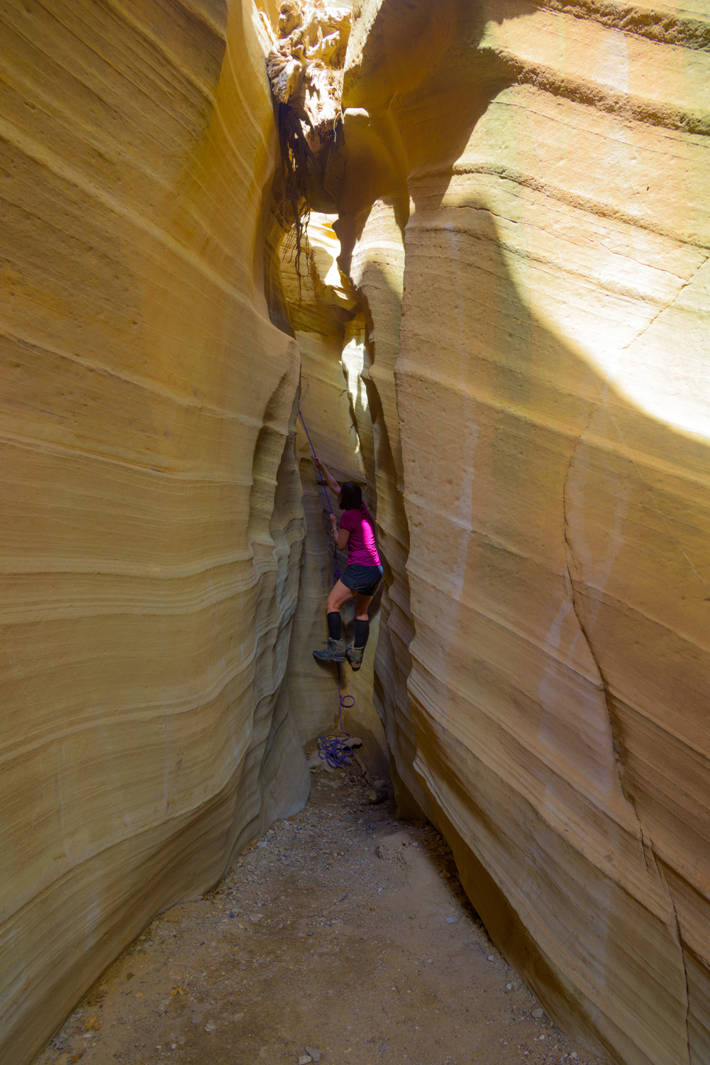 A little drop getting into this slot canyon. You can see that we had a cheater rope.