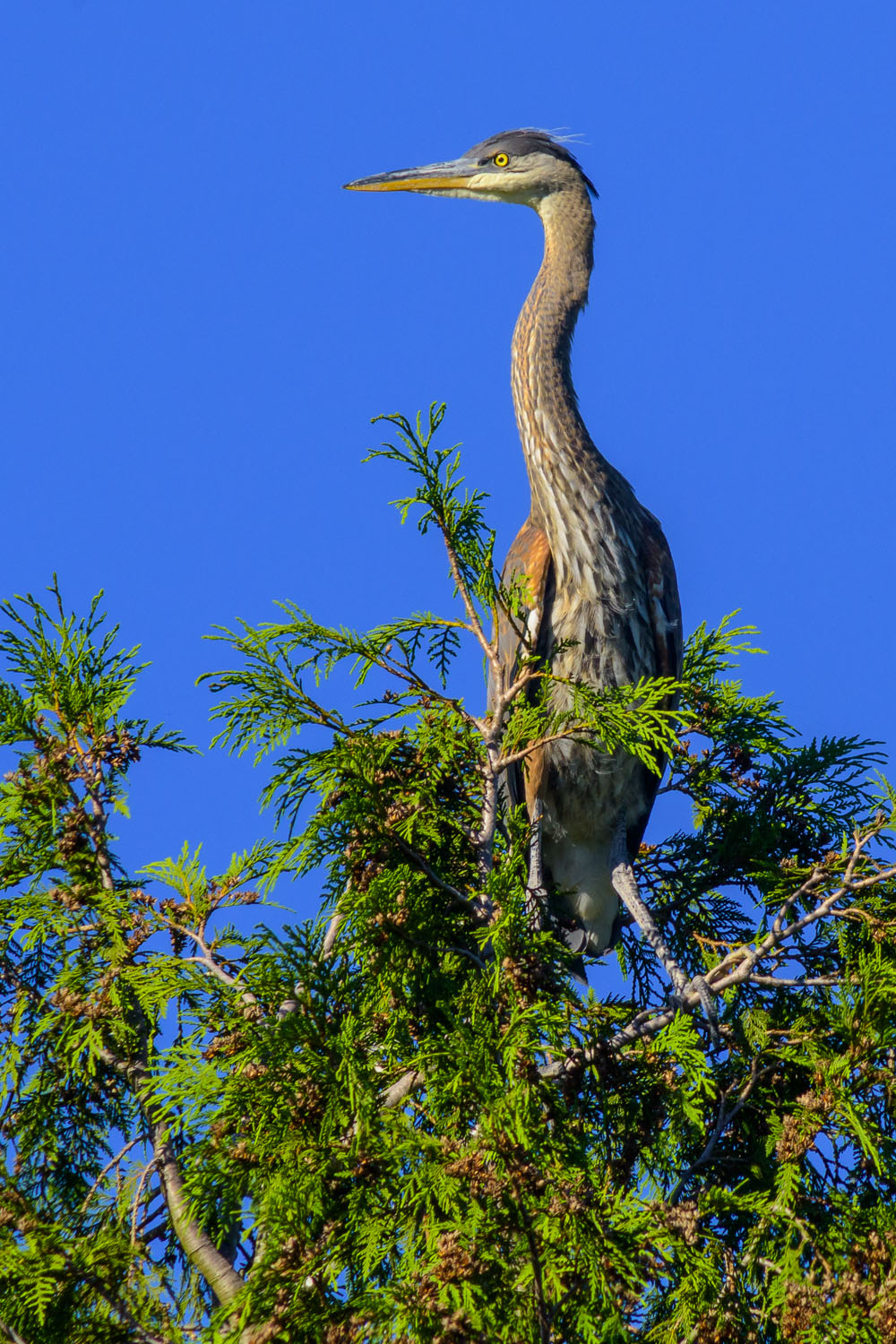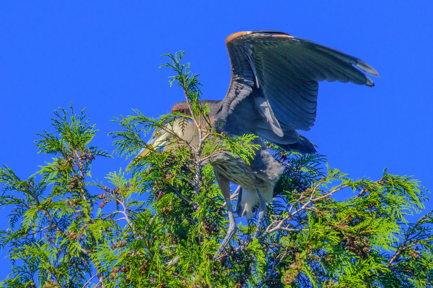 6. After this "pose," it took off on a short flight to a neighboring cedar tree.